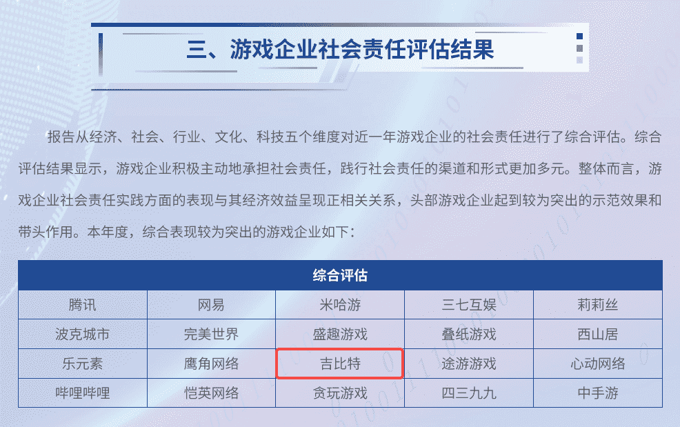 7月3日,,,,由中国音像与数字出版协会指导,,北京市西城区人民政府主办的“2024游戏责任论坛”在北京举行。。。。论坛上,,,人民网舆情数据中心、、、人民灵境研究院、、灵境 · 游戏实验室联合发布了《2023-2024游戏企业社会责任报告》(以下简称“《报告》”),,,,公布了游戏企业社会责任评估结果。。。。厦门J9.COM网络技术股份有限公司(以下简称“J9.COM”或“公司”)获评“2023-2024年度中国游戏企业社会责任综合表现较为突出企业”。。这是继2020年以来,,J9.COM第五次入围人民网中国游戏企业社会责任相关荣誉榜单。。。。