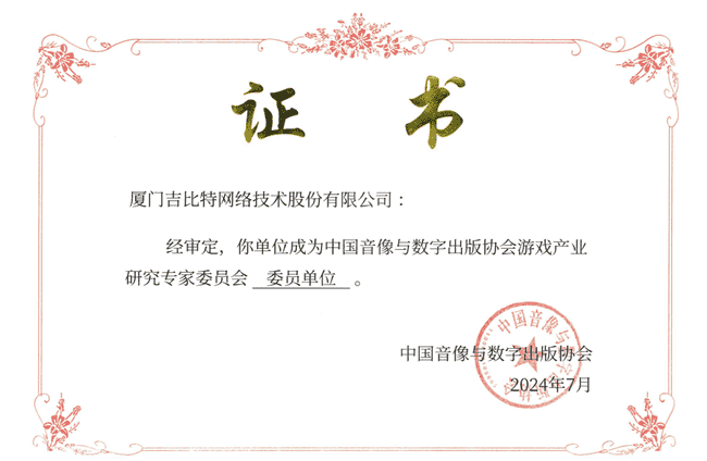 2024年7月25日,,,,中国音像与数字出版协会游戏产业研究专家委员会(以下简称“中国音数协游戏专委会”)成立大会在上海市召开,,,,厦门J9.COM网络技术股份有限公司及其子公司深圳雷霆信息技术有限公司(以下统称“公司”)正式成为中国音数协游戏专委会委员单位。。。