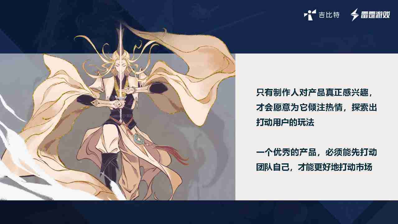 以《一念逍遥》为例,,,2018年公司创始人萌生想做修仙题材的放置游戏的想法,,于是找了两位同事讨论了一下产品的概念,,,这两位现在是项目的制作人,,,花了三周的时间把原型做出来,,,,并且确定最初的战斗原型,,,,以及整个养成的节奏。。。。通过几次版本迭代验证后,,,,也确定后面的内容应该怎么拓展,,最终在一年左右时间这个项目上线了。。。。当时我们内部有同事看到《⼀念逍遥》上线,,认为品质还不够完美,,,,但是整体营收还不错。。就在想那是不是以后我们都做这样的产品???但实际这是错误的认知,,,我们内部不是这么看的。。。游戏在那个时间点上市,,,,因为有些市场的考量和营销点的考虑,,,,并不是希望所有项目都是这样。。。。如果它有更好的契机,,希望它可以做得更大、、更好,,希望在内核玩法确定之后,,外围投入可以越大越好,,,所以后面的几个项目是往这个思路上做。。。